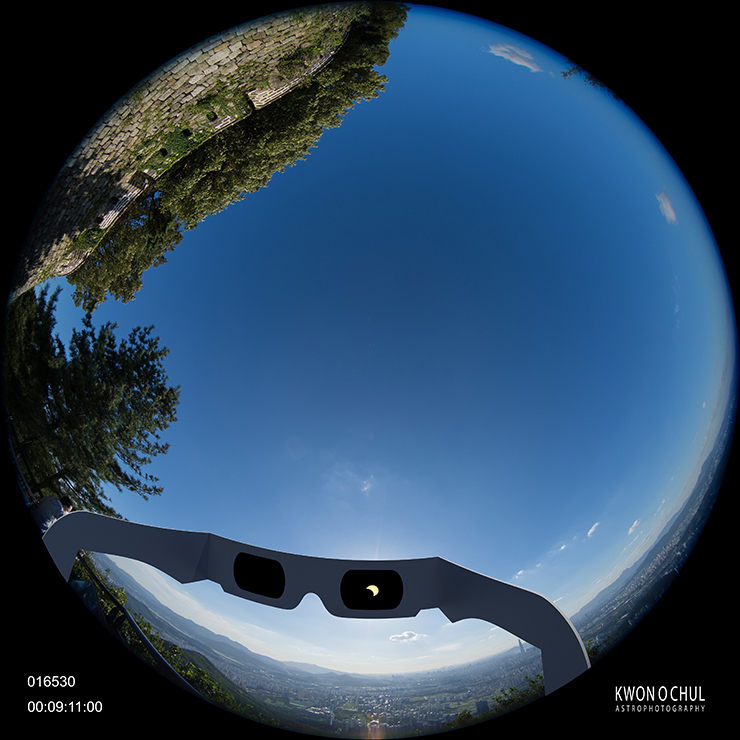 Surrounding the black disk of the Moon is the Sun's atmosphere, the “corona.” It is made of gas at a temperature of millions of degrees. Streamers from the corona flow away from the Sun to create a “solar wind” that blows across space. We can see the corona from Earth only during an eclipse. This scene is taken at Oregon, USA on August 21, 2017 by Oh Jun Ho, Jeong ByoungJun.
