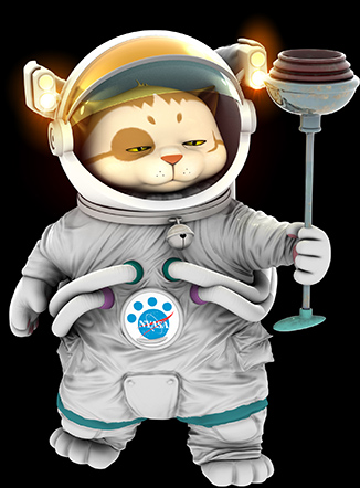 キッツ ニャサ(NYASA、猫宇宙局)のクリーニング隊員として働いている若いタキシード柄の猫。おくびょうものではあるが、好奇心の方が大きいため事故を起こすこともあるニャン。